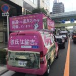 今日も宣伝ワゴンの「彼氏は諭吉号」は活動中(^.^)